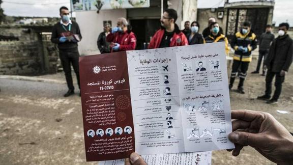 Ekipler, kapı kapı dolaşarak koronavirüs hakkında kısa bilgiler veriyor, virüsten korunma yollarını anlatan 6 sayfalık Arapça broşürleri dağıtıyor.