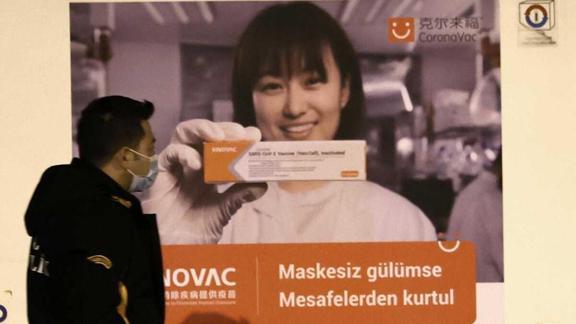 Çin'den Türkiye'ye sabaha karşı gelen aşıların üzerinde "Maskesiz gülümse, mesafeden kurtul" sloganının olduğu dikkat çekti.