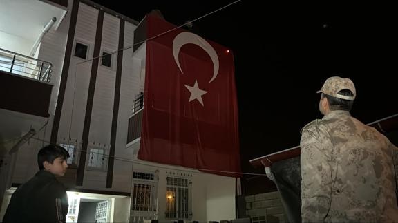 Şehidin ailesinin evine Türk bayrağı asıldı.