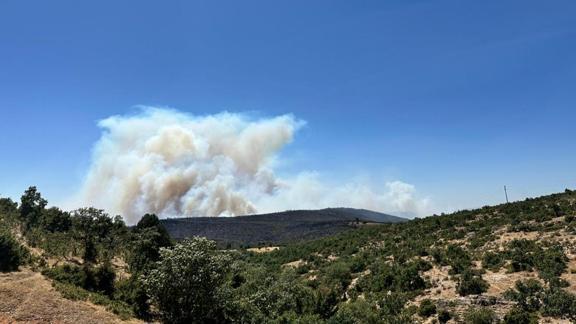 Uşak Valisi Naci Aktaş yangın bölgesinde ekiplerden bilgi aldı.
