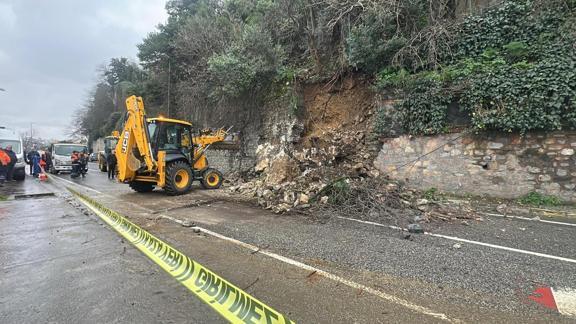 Kandilli Mahallesi Göksu Caddesi'nde ormanlık alanın istinat duvarı, henüz belirlenemeyen nedenle çöktü.