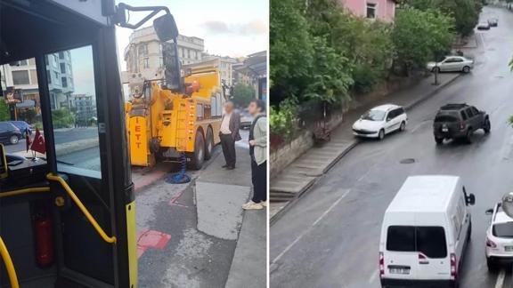 Dün İETT aracından yola akan yağ nedeniyle rampa aşağı hareket halinde olan araçların sürücüleri zor anlar yaşamış, sürücüsünün direksiyon hakimiyetini kaybetmesi sonucu kayan bazı araçlar kaldırıma çıkmış, bazıları da başka araçlara çarpmamak için duvara vurmuştu.