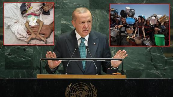 Başkan Erdoğan, ABD'nin New York kentinde düzenlenen Birleşmiş Milletler (BM) 80. Genel Kurulu'na hitap etti. Hitabında, önceki yıllarda katıldığı toplantılarda olduğu gibi bu yıl da dünyanın dikkatini Gazze'de yaşanan soykırıma çeken Erdoğan, İsrail'in yaptığı soykırımı fotoğraflar ile belgeledi.