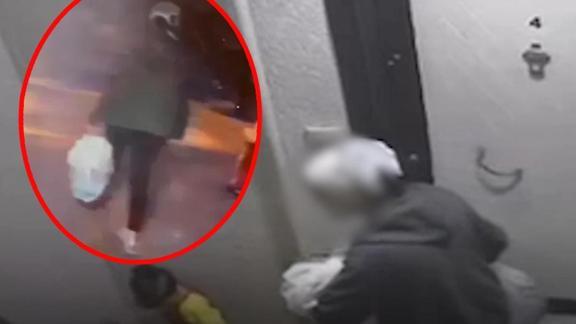Şüphelinin evinden çıkarken poşete koyduğu bebeği daha sonra çöpe bırakması güvenlik kamerasınca kaydedildi.