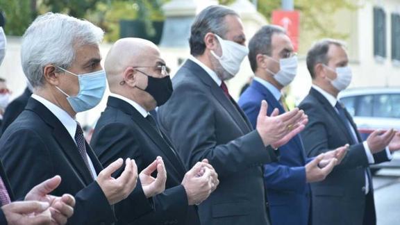Büyükelçilik binası girişinde Viyana'da Ermeni terör örgütleri tarafından şehit edilen diplomatların anısına yapılan şilte çelek konarak başlayan tören, şehitler için yapılan dua ile sona erdi.