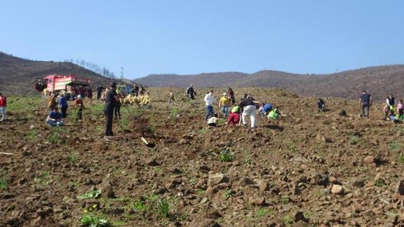 Ormanı yeniden canlandırmak için 30 bin fidan dikmeyi amaçladıklarını söyleyen Soner Demir, "Burada fidan dikmek için toplandık. Ormanlık alanda çıkan yangınlardan dolayı arazilerimizde bir sürü ağaçlar yandı, bu alanın tekrardan yeşillendirmek için buradayız. Buraya ortalama yaklaşık 30 bin fidan dikeceğiz ama 5 bin adet fidan getirdik. Ramazan Ayından dolayı fazla dikim yapamadık, şu ana kadar bine yakın dikim yaptık geri kalanını Ramazan ayından sonra dikeceğiz.