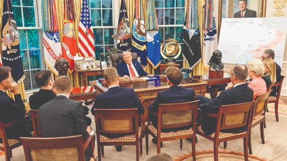ABD Başkanı Donald Trump, 15 Ağustos'ta Alaska'da Rusya Devlet Başkanı Vladimir Putin'le görüşmesinin ardından, savaşın diğer tarafı olan Ukrayna Devlet Başkanı Vladimir Zelenski ile Avrupalı liderleri Beyaz Saray'da ağırladı. ABD Başkanı, Washington'da ilk olarak Zelenski ile bir araya geldi. Ardından İngiltere Başbakanı Keir Starmer, Fransa Cumhurbaşkanı Emmanuel Macron, İtalya Başbakanı Giorgia Meloni, Almanya Başbakanı Friedrich Merz, Finlandiya Cumhurbaşkanı Alexander Stubb, NATO Genel Sekreteri Mark Rutte ve Avrupa Komisyonu Başkanı Ursula von der Leyen ile toplantı gerçekleştirdi.