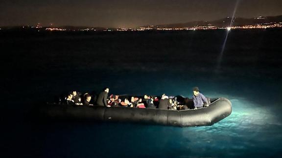 Ekiplerce durdurulan hareketli lastik botta 20'si çocuk 43 düzensiz göçmen bulunduğu belirlendi.