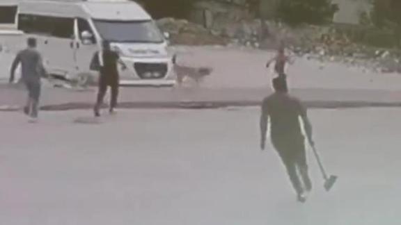 Çocuğun, köpeklerin saldırısından son anda kurtulduğu anlar bir iş yerinin güvenlik kamerasına yansıdı.