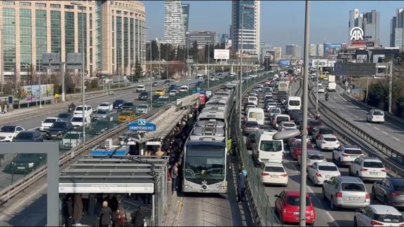 Seferlerin aksaması nedeniyle metrobüs güzergahında Çağlayan durağına kadar uzun araç kuyrukları oluştu.
