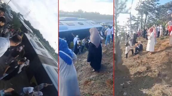İETT otobüsü, şoförün direksiyon hakimiyetini kaybetmesi nedeniyle yol kenarındaki boşluğa düşerek yan yattı.