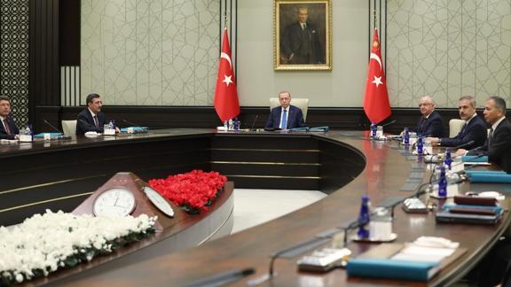 Cumhurbaşkanlığı Külliyesi'ndeki basına kapalı toplantı 1 saat 20 dakika saat sürdü.