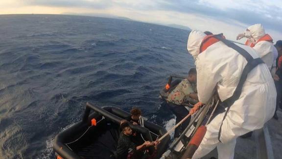 Aydın'ın Kuşadası ve Didim ilçeleri açıklarında Yunanistan unsurlarınca Türk kara sularına itilen lastik botlardaki 79 düzensiz göçmen kurtarıldı.