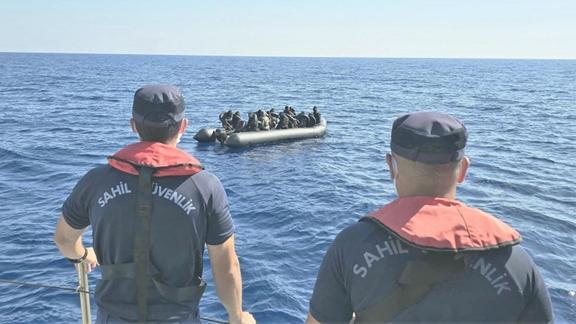 Fethiye ilçesi açıklarında görevli Sahil Güvenlik botu tarafından tespit edilip, durdurulan lastik bottaki 9'u çocuk 17 düzensiz göçmen yakalandı.