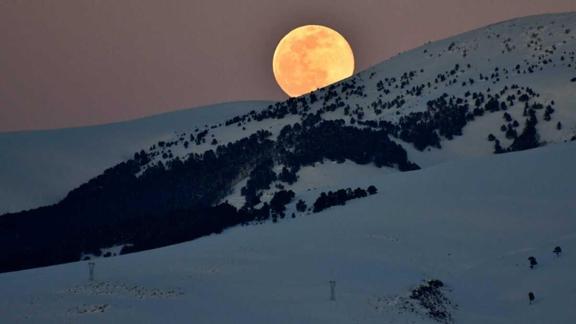 Tunceli'de akşam saatlerinde beliren dolunay, karla kaplı Munzur Dağları ile güzel görüntü oluşturdu.