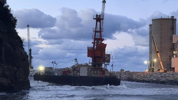 Zonguldak Liman Başkanlığı ekiplerinin römorkörler vasıtasıyla açığa taşıdığı sırada halatların kopması sonucu yüzer vinç dereye sürüklendi.