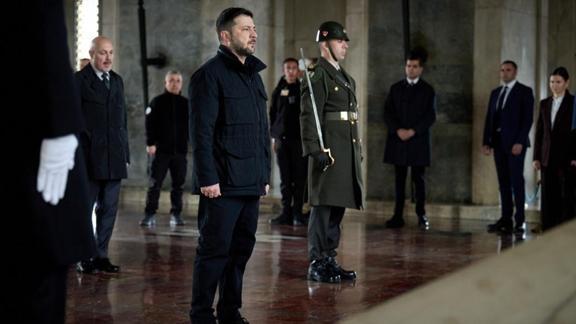 Volodimir Zelenskiy, Atatürk'ün mozolesine çelenk bıraktı ve saygı duruşunda bulundu.