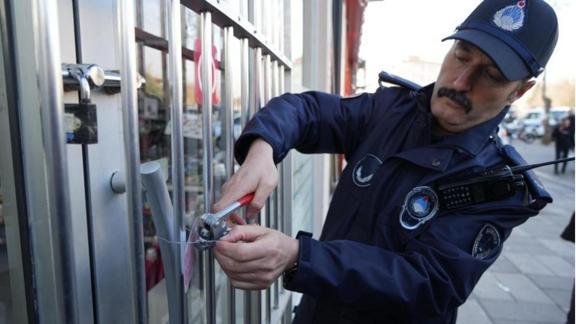 MÜHÜRLENEN MARKET KAPISINA KAPATILDIĞINA DAİR AFİŞ ASILDI