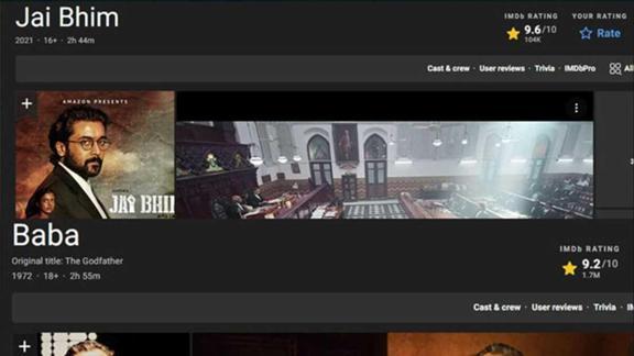 Sinema ve diziler konusunda bilgiler sağlayarak kullanıcıların yapımları oyladığı İnternet Film Veri Tabanı'na (IMDB) göre, Hindistan yapımı Jai Bhim filmi, Baba (Godfather) ve Esaretin Bedeli (Shawshank Redemption) filmlerini geride bırakarak 9.6 ratinge ulaştı. 104 bin kişinin oyları sonucunda film, şimdilik 'en iyi film' unvanı aldı.