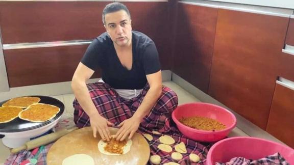 Korona virüs nedeniyle kendini karantinaya alan Berdan Mardini, evde hamur açıp, lahmacun yaptı.