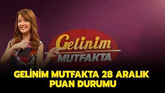 Hafta içi her gün Kanal D'de yayınlanan yarışma programı Gelinim Mutfakta'da günün puanlaması merak edildi. 4 gelin ve kayınvalidenin mücadele ettiği yemek yarışması izleyenlere keyifli anlar yaşatıyor. Peki, Gelinim Mutfakta 28 Aralık puan durumu açıklandı mı? Bugün Gelinim Mutfakta'da gün birincisi kim oldu?