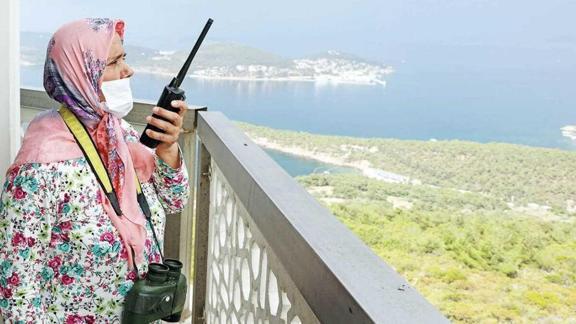 Anadolu Yakası'nda çıkan yangınların görülmesinde önemli bir yere sahip olan Büyükada yangın gözetleme kulesinde 15 yıldır görev yapan Hatun Aydın, Orman Arazöz şoförü eşi Hüseyin Aydın ile birlikte ormanları gözetliyor. Dürbünü elinden düşürmeyen Hatun Abla, “Burası benim dünyam, çocuklarım da kulede büyüdüler” diyor.