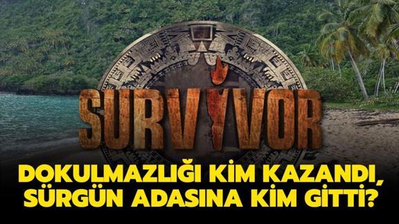 Survivor dokunulmazlık oyununu kim kazandı, hangi yarışmacı sürgün adasına gitti merak ediliyor. Dün akşam oynanan güç ve denge mücadelesinin yaşandığı dokunulmazlık oyunu, izleyenleri ekrana kilitledi. Ünlüler ve gönüllüler takımı ikinci kez zorlu parkurda karşılaştı. Peki, Survivor dokunulmazlık oyununu kim kazandı? Survivor kimin ismi çıktı, kim sürgün adasına gitti?