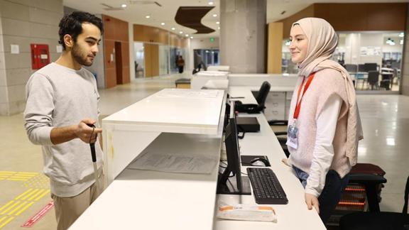 OMÜ Kütüphane ve Dokümantasyon Daire Başkanlığında görevli öğretim görevlisi İbrahim Ethem Olukcuoğlu, engelli biriminin en önemli amacının bilgiye ve bilgi kaynaklarına erişimde fırsat eşitliğinin sağlanması olduğunu söyledi. Kütüphanenin engelli biriminin sadece üniversite öğrencilerine değil tüm vatandaşlara açık olduğunu söyleyen Olukcuoğlu,"Engelli biriminde öncelikle danışma hizmetleri veriyoruz. Bir kitabın sesli kitap haline getirilmesi ya da tekst haline getirilmesi veya Braille yazıcılarla görme engelli bireylerin anlayabileceği çıktılar hazırlıyoruz." dedi.