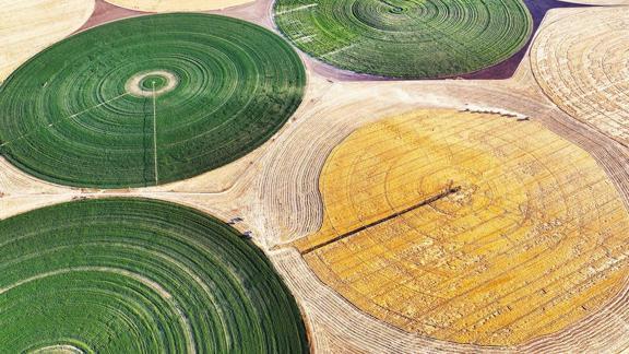 Tarım ve Orman Bakanlığı Tarım İşletmeleri Genel Müdürlüğünün (TİGEM) ikinci ve üçüncü büyük işletmeleri Altınova ile Gözlü Tarım İşletmelerindeki hububat ekili dairesel tarlalarda hasat sezonu kapandı. Kadınhanı ilçesinde 310 bin dekar arazideki tarımsal faaliyetiyle ülke ekonomisine katkı sağlayan Altınova Tarım İşletmesi'nde, arazinin 285 bin dekarında tarla bitkileri yetiştiriliyor. Müdürlüğün her biri 50 futbol sahası büyüklüğünde 365 dekarlık 78 dairesel tarla, gökyüzünden bakıldığında geometrik desenleriyle ilgi çekiyor. İşletme müdürü Osman İbican, işletmede sertifikalı hububat tohumculuğu ve damızlık hayvancılık faaliyetinin yapıldığını söyledi. Konya'nın Sarayönü ilçesindeki TİGEM Gözlü Tarım İşletmesi Müdürlüğünde de hasat heyecanı tamamlandı. Modern ekipmanların ve teknolojinin kullanıldığı; yağmurlama, damlama ve robotik sulama sistemleriyle üretim yapıldığı bu işletmede de 61 bin dekarlık hububat ekili alanda hasat sona erdi. Gözlü TİGEM Bitkisel Üretim Şube Şefi Dudu Erdoğan da 492 dekarlık her biri 69 futbol sahası büyüklüğündeki tarlalarda arpa hasadının tamamlandığını söyledi.
