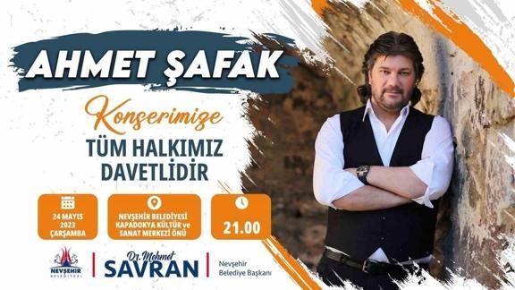 Ünlü sanatçı Ahmet Şafak, Nevşehir Belediyesi tarafından düzenlenen konserde sahne alacak. Ahmet Şafak konseri, 24 Mayıs 2023 Çarşamba günü yapılacak.