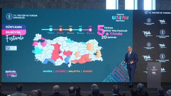Kültür ve Turizm Bakanı Mehmet Nuri Ersoy, Atatürk Kültür Merkezi'nde düzenlenen "2025 Yılı İlk 3 Aylık Turizm Verilerini Değerlendirme ve Türkiye Kültür Yolu Festivali Tanıtım Toplantısı" programında AKM'de basın mensuplarıyla bir araya geldi. Bakan Ersoy, Türkiye Kültür Yolu Festivalinin 5'inci yılında 20 şehirde gerçekleştirileceğini, geçen yıla ek olarak Manisa, Mardin, Malatya ve Kayseri'nin de dahil edildiğini dile getirdi.