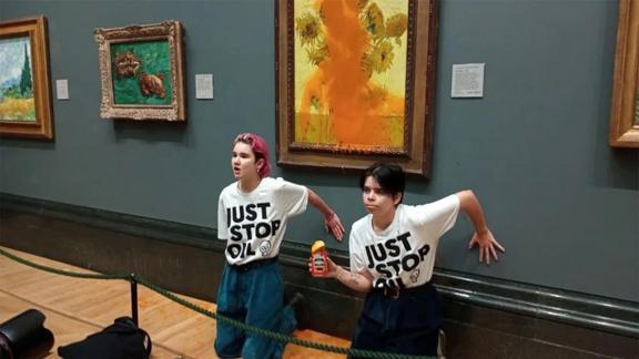 Ülkede "Just Stop Oil" grubunun iki üyesi, Ekim 2022'de başkent Londra'daki National Gallery'de sergilenen Vincent Van Gogh'un "Ayçiçekleri" tablosuna iklim değişikliğine dikkati çekmek amacıyla domates çorbası atmıştı. Aktivistlerden 21 yaşındaki Phoebe Plummer, "Daha değerli olan nedir? Sanat mı yoksa hayat mı?" diye bağırmıştı. Grubun bir diğer protestosunda da iki aktivist, Kasım 2023'te Londra'daki National Gallery'de sergilenen "Rokeby Venus" adlı tablonun koruyucu camını acil çıkış çekiçleriyle kırmıştı.