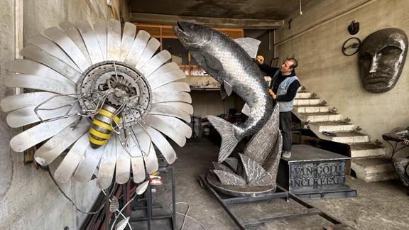 Van'da yaşayan İranlı heykeltıraş Ali Mutii, hurdacılardan topladığı 350 kilogramlık demirden 3 metre 30 santimetrelik "inci kefali" heykeli yaptı.