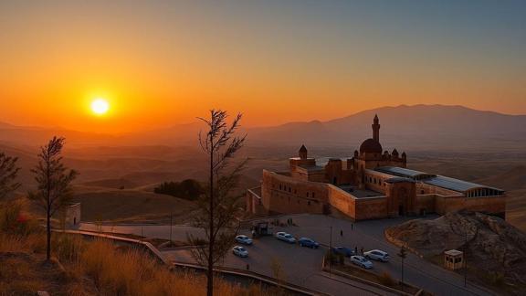 Osmanlı döneminin en önemli eserlerinden biri olan ve ihtişamıyla dikkat çeken İshak Paşa Sarayı, akşam saatlerinde ortaya çıkan eşsiz gün batımıyla kartpostallık görüntülere sahne oldu.