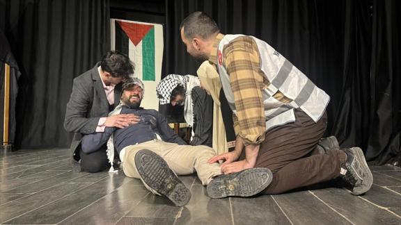 Oyuncu Eyüp Kılıç ise Filistin'de yaşanan zulme karşı duyarlılıklarının yıllardır sürdüğünü belirterek, "Elimizle düzeltemediklerimizi dilimizle düzelteceğiz, dilimizle düzeltemediklerimiz için de kalbimizde buğz edeceğiz. Biz şu anda elimizle düzeltemediğimizi, tiyatro dilimizle düzeltmeye çalışıyoruz. Allah çalışmalarımızı hayırlara vesile yapsın." dedi.