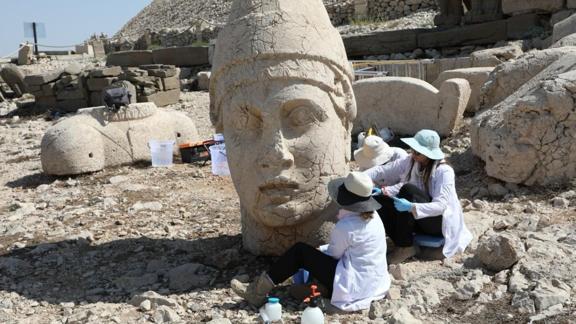 Kültür ve Turizm Bakanlığının sağlamlaştırma projesiyle, Nemrut Dağı'nın doğu ve batı teraslarında yer alan eserler nanoteknolojiyle koruma altına alınıyor. Kültür ve Turizm Bakanı Ersoy, NSosyal'deki hesabından yaptığı açıklamada, 5 yıllık süreçte, çağın en ileri teknikleriyle gerçekleşecek çalışmalarla, bu eşsiz mirasın gelecek kuşaklara aktarılacağını belirtti. Bakan Ersoy, paylaşımında şunları kaydetti: "Nemrut'un binlerce yıllık mirasını çağımızın en ileri teknikleriyle geleceğe taşıyoruz. Yürütülen ilk sağlamlaştırma çalışmalarıyla Antiochos ve Kartal başları ile Apollon heykeli yeniden bütünlüğüne kavuştu. Doğu ve batı teraslarında nanoteknolojiyle yapılan bu müdahaleler sayesinde taşların dokusu güçlendirildi, çatlaklar kapatıldı. Taşların dokusunu güçlendiren nano kireç ve nano silikat yöntemleri ilk kez Nemrut'ta kalıcı şekilde uygulanıyor ve bu yeni yöntem ilk kez Nemrut'un taşlarına nefes oldu. Yapıları gelecek nesillere taşıyacak olan en doğru yöntem 2 yıl süren çalışmaların sonrasında belirlendi. 5 yıllık yol haritasıyla ilerleyecek bu proje, eşsiz mirası gelecek kuşaklara aktarmak için attığımız en önemli adımlardan biridir. Nemrut'un zirvesinde başlattığımız bu çalışmalarla, insanlık tarihinin sessiz tanıklarını, gelecek yüzyıllara güvenle emanet ediyoruz. Emeği geçen tüm ekip arkadaşlarıma gönülden teşekkür ediyorum."