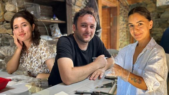 Kaz Dağlarının Mehmetalan Köyü'nün Kyble Nature Life mekanında bu yıl ilki gerçekleştirilen Doğaya Sanat Çalıştayı'nı gazeteci olarak takip edenlerden biriydim. Neredeyse ağaçlardan gökyüzünün görünmediği, bilindiği üzere oksijen seviyesinin zirve yaptığı, ortama yeşil ve su sesinin hakim olduğu ve tüm bunlara tatlı bir esintinin eşlik ettiği bir yerde sanat çalıştayı yapmak çok iyi düşünülmüş bir fikrin ürünüydü. Ahmet Duru, Betül Kotil, Göksu Gül, Nisan Talaz, Reyhan Mente, Sefa Çatuk, Selin Sezgin, Serdar Acar, Serkan Yüksel, Seydi Murat Koç, Sinan Orakçı, Taylan Türkmen ve Tuba Geçgel'in katılımcı sanatçı olarak yer aldığı ve Seydi Murat Koç ile Tuğçe Eren yürütücülüğünde, Oğuzhan Taflı'nın desteğiyle hayata geçirilen çalıştayda sanatçılar hem üretim yaptı hem de yöre halkıyla birlikte yapılan atölye ve etkinliklere dahil oldu. Böylece bulunduğu ortamla da bağ kuran keyifli ve verimli bir çalıştay süreci geçirildi. Bu durum sanatçılar arası diyaloğa ve ürettikleri eserlere de yansıdı hiç şüphesiz. Hâl böyleyken hem bu yansımayı hem de doğanın sanatla ya da sanatın doğayla kurduğu ilişkiyi ve aralarındaki benzeşimi konuşmak üzere katılımcı sanatçılardan üçü ile bir araya geldim. Reyhan Mente, Betül Kotil ve Ahmet Duru'ya yönelttim sorularımı. Neler sordum, onlar neler söyledi, buyurun sohbetimize...