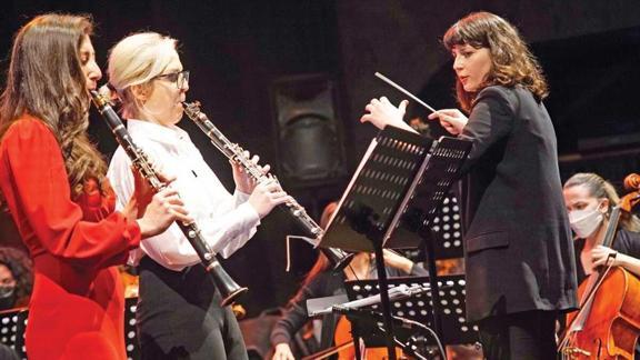 Uluslararası Klarnet Festivali'nde kadının kültür ve sanat alanındaki yerine vurgu yapıldı. Cumhurbaşkanlığı İletişim Başkanlığı ve Kültür ve Turizm Bakanlığı tarafından desteklenen festivalin ikinci gününde 'Kadın Senfonisi' sahne aldı. Şef Ceyda Ayanoğlu yönetimindeki tamamı kadın müzisyenlerden oluşan ve festival kapsamında özel olarak bir araya gelen senfoni orkestrasının solistliğini klarnet sanatçıları Ecesu Sertesen ve Merve Nuvasil gerçekleştirdi. Gecede ülkemizdeki orkestralarda kadın müzisyenlerin, solistlerin ve orkestra şeflerinin sayısının artması gerekliliğinin altı çizildi. Yaklaşık 90 dakika süren konserde klasik eserlerden 'Weber Introduction Theme and Variations', 'Danzi Potpourri No.2' çalınırken Türk Müziği'nin sevilen 'Kürdili Hicazkar Longa' ve 'Nihavent Longa' besteleri de senfoni orkestrası eşliğinde yorumlandı.