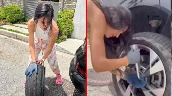 Komşusunun yardımına koşan ünlü oyunsu Aksoy, arabanın lastiğini değiştirdi. 10 parmağında 10 marifeti olan Aksoy'un o anları sosyal medyada gündem oldu. Sosyal medya kullanıcıları Saadet Işıl Aksoy'un lastik değiştirdiği anları beğeni ve yorum yağmuruna tutu.