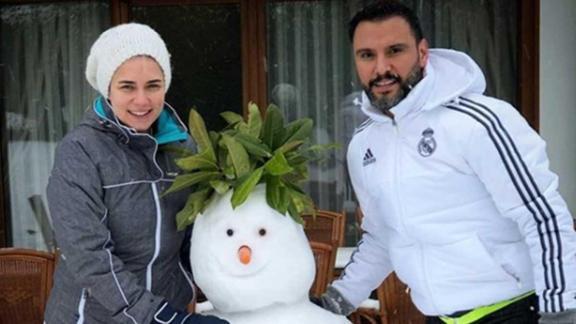 İstanbul'da yoğun kar yağışını fırsat bilen Alişan ve Buse Varol çifti, kardan adam yaptı.