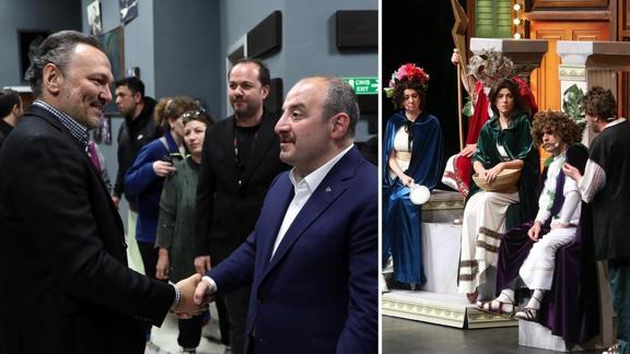 Sanayi ve Teknoloji Bakanı Mustafa Varank, Güldür Güldür Show'un 'Türkler uzaya giderse' gösterisini izledi. Bakan Varank, oyunun ardından kulise giderek oyuncuları tebrik etti.
