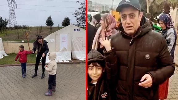Kahramanmaraş Sütçü İmam Üniversitesi (KSÜ) Avşar Yerleşkesi'ndeki çadır kentlerde barınan depremzedeleri ziyaret eden ünlü isimler, çeşitli hediyeler verdikleri çocuklarla oyunlar oynadı.