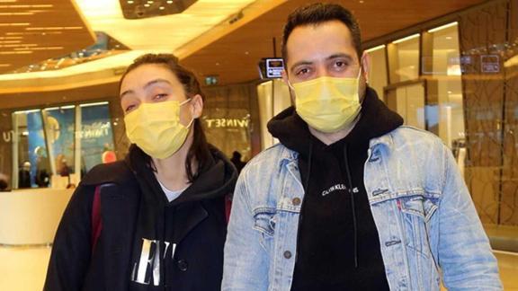 Akşam üzeri geldikleri AVM’de kısa bir alışveriş turuna çıkan Merve Dizdar-Gürhan Altundaşar çifti, sosyal mesafe kurallarına titizlikle dikkat etti.