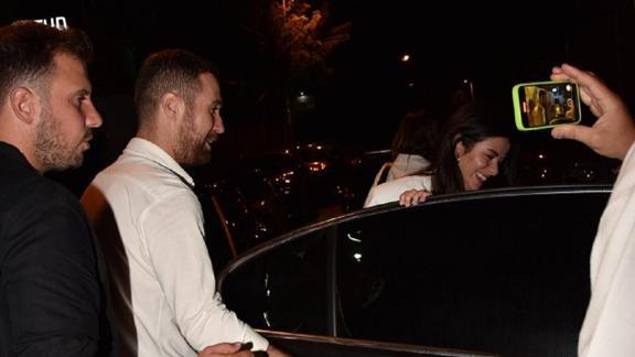 Mekandan el ele çıkan iki isim, kendilerini bekleyen araçlarına bindiler.