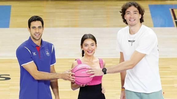 Neslihan Atagül, Cedi Osman ve Doğuş Balbay arasında pembe topla hava atışı yaparak farkındalık yarattı.