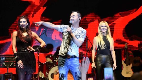 Eypio ve Serdar Ortaç'a konserde çiçek, kayısı ve aslan figürü hediye edildi.