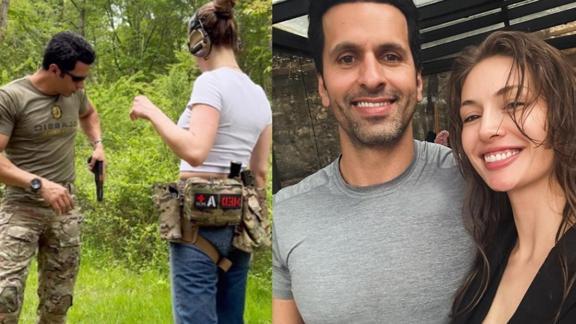 Çift, bu kez atış poligonunda değil, ormanlık bir alanda atış yaptı. Yasemin Allen, o anların videosunu da "Anlat anlat, ben dinliyorum" notuyla sosyal medya hesabından yayımladı.