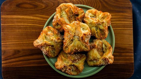 Şekil verin: Milföy karesini tezgâha alın. Ortasına iç harçtan koyun.