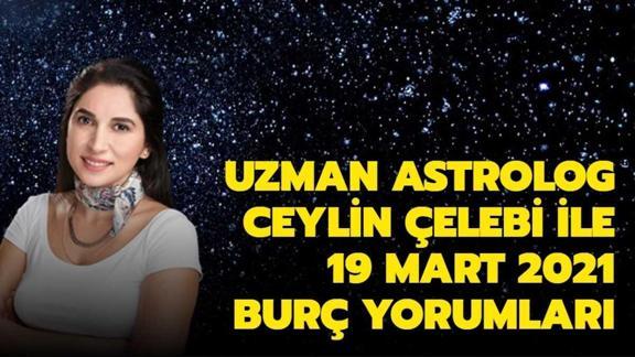19 Mart Cuma burç yorumları para, sağlık ve aşk konularında ipucu veriyor. 19 Mart'ta Koç burcu parasal konularla ilgilenebilir, Aslan burcu yeni haberler alabilir. Akrep burcunun gündeminde hisse hisseli kazanımlar var. Astrolog Ceylin Çelebi tarafından kaleme alınan günlük burç yorumları herkesin farklı alanlarda ilgilendiği konuları gözler önüner seriyor. Peki, haftanın son günü kimler için iyi bir kapanış olacak? İşte 19 Mart 2021 burç yorumları...