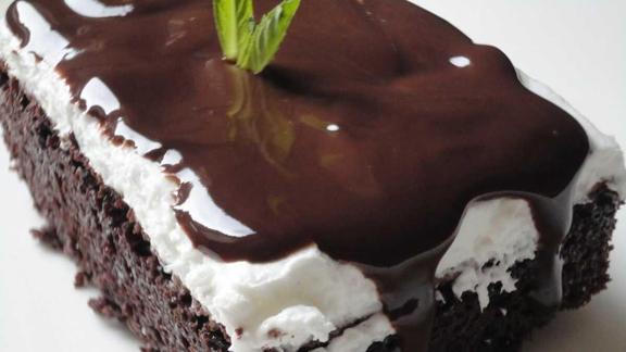 Son olarak bitter çikolatalı sosu pişirin ve biraz soğuduktan sonra kekin üzerine eşit bir şekilde yayın. Dolapta en az iki saat dinlendirip arzu edilen şekilde süsleyip servise sunabilirsiniz.